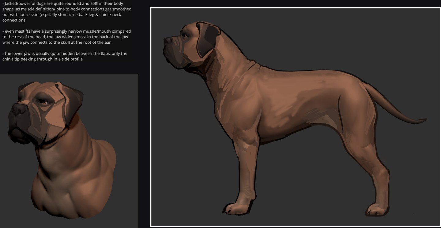 Recommended mastiff guard breeds over shepherds for a stationary village resource: standing guards suited the fixed asset better than roaming livestock guardians. Overpaint guidance focused on breed-specific anatomy: softened muscle definition, muzzle width, and facial structure.